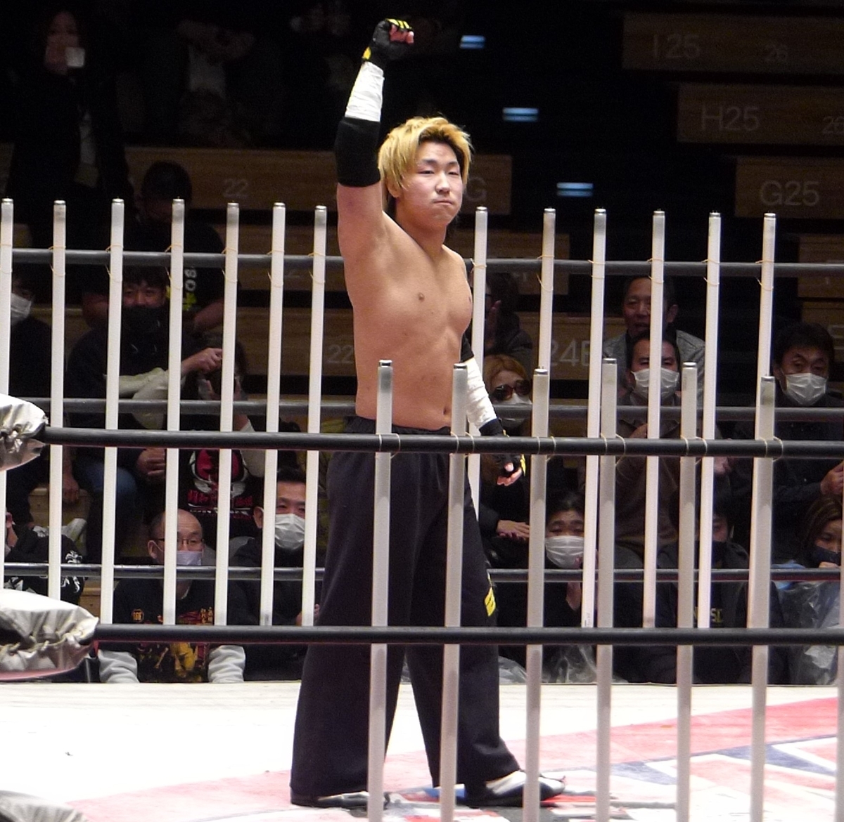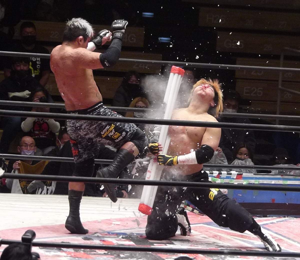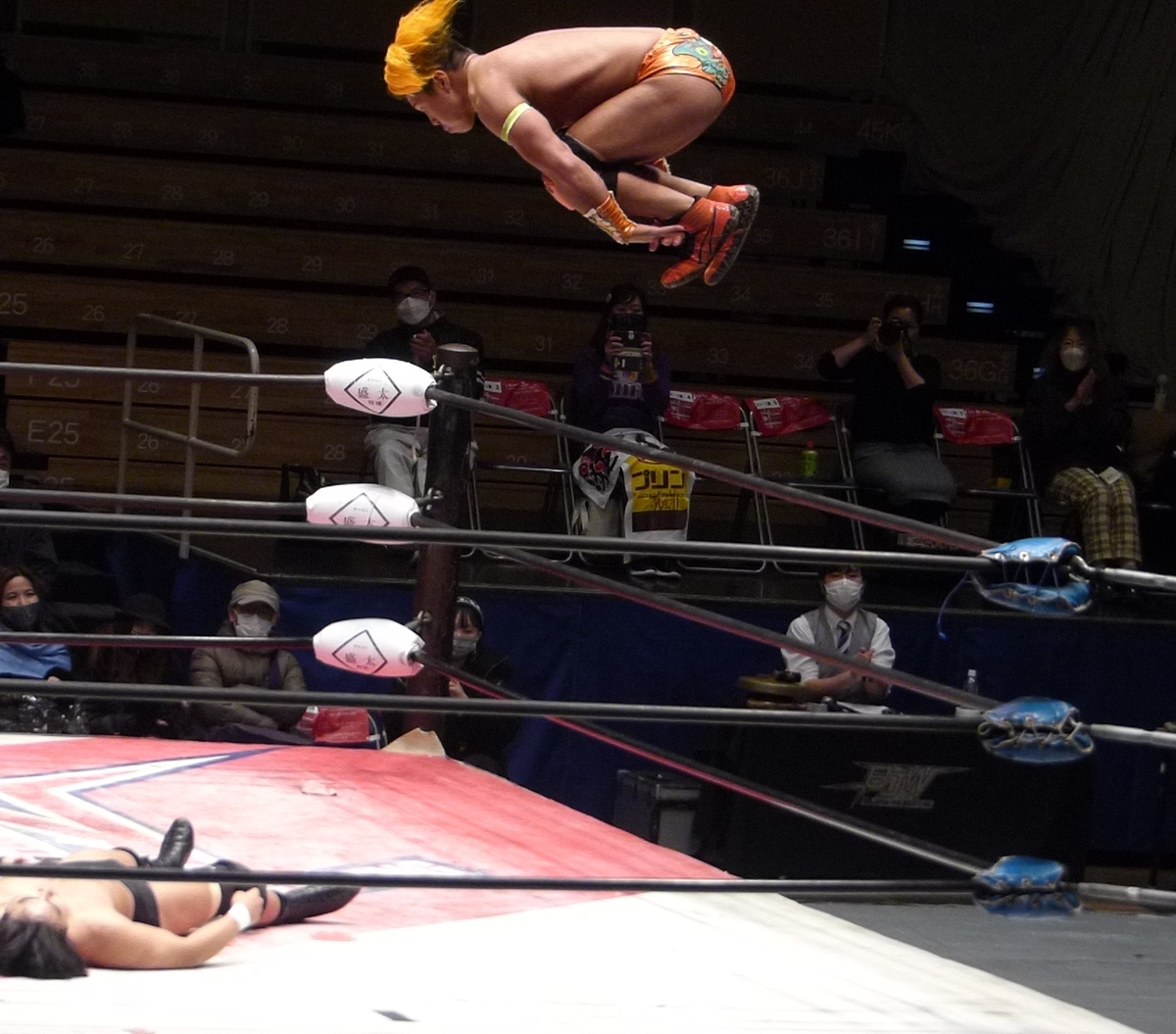 若松はデスマッチだとロングパンツ仕様になるのかな。普段は黄色のショートタイツだからね。