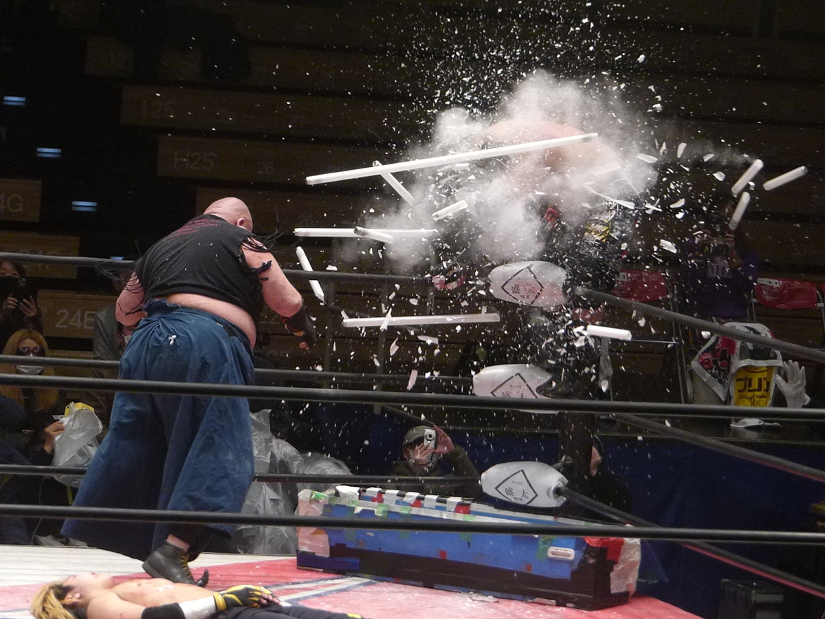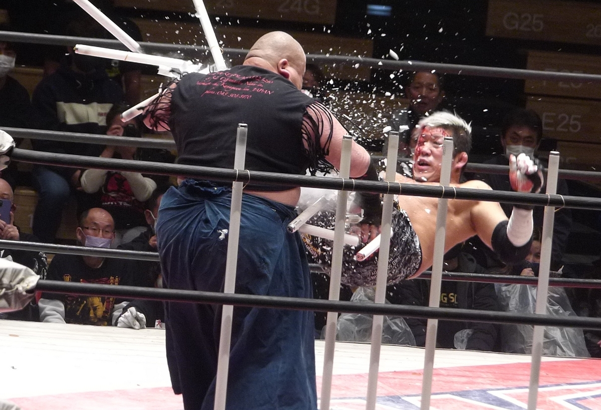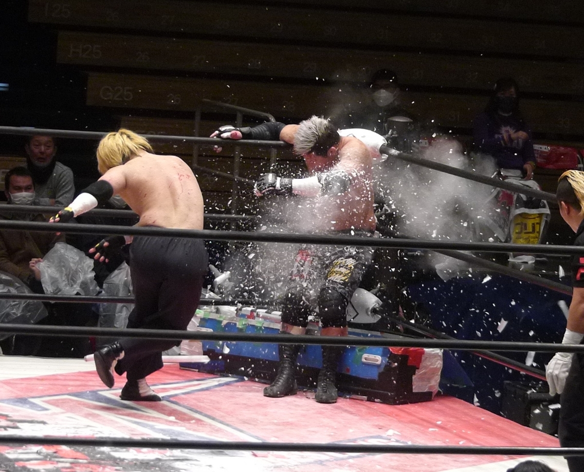 このカットの仕方、蛍光灯をかなり雑に投げてるように見えるんだけど、ある意味「わかっている」デスマッチファイターだから感あった。
