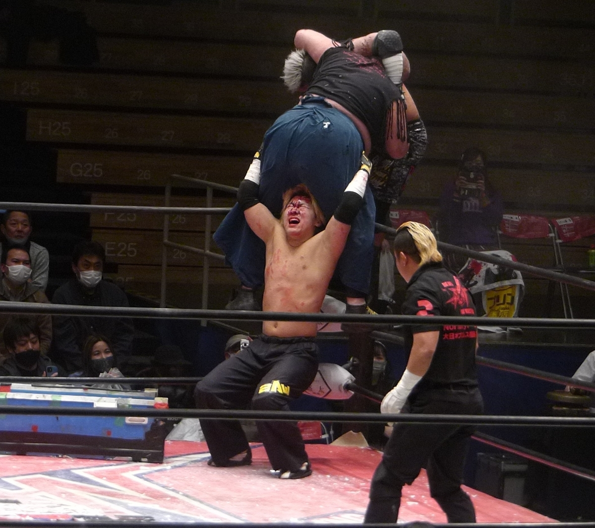 若いの二人は頑張ったけど、ヤンキー二丁拳銃の引き出しが多すぎるというのを知らしめたような試合だったと思います。この二人はアジアタッグを取る程度に強いけど、これに加えてさらにデスマッチファイターとしても素晴らしい選手だからね。名タッグは色々あれど、様々な試合に対応できてかつ実績を残せるタッグチームはそうそういないんじゃないか。
