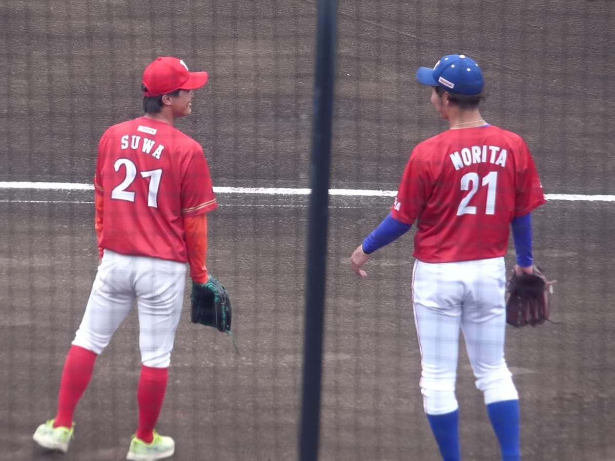 背番号写せなかったのでわかりにくいですが、巨人のユニフォームのは香月、トヨタのユニフォームのは葛川君です。