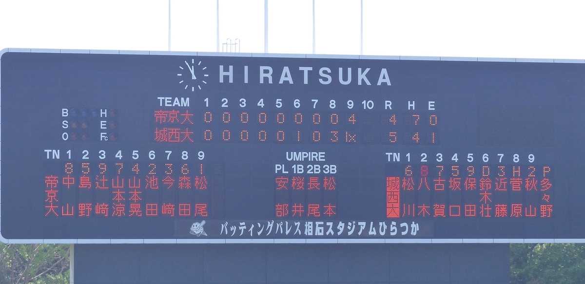 というわけで、5‐4で城西大がサヨナラ勝ちを収めました。