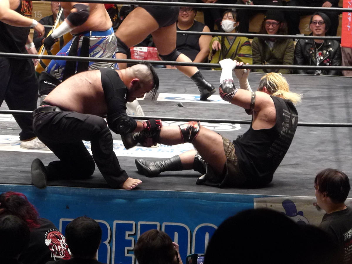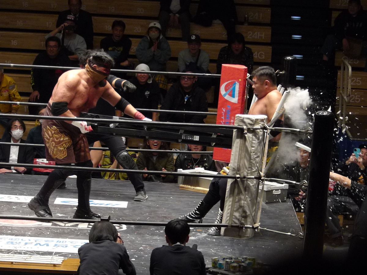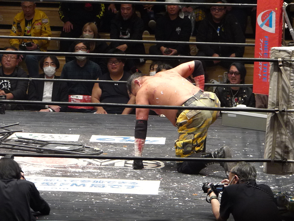 そんなこんながあって、正岡は(靴を)脱がされてしまいました。正岡は裸足デスマッチ、やったことあったかなぁ。初めてなんじゃないかな。