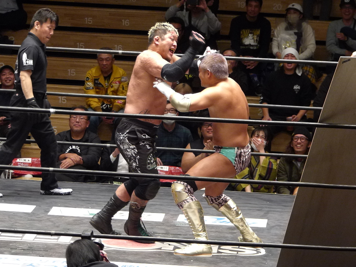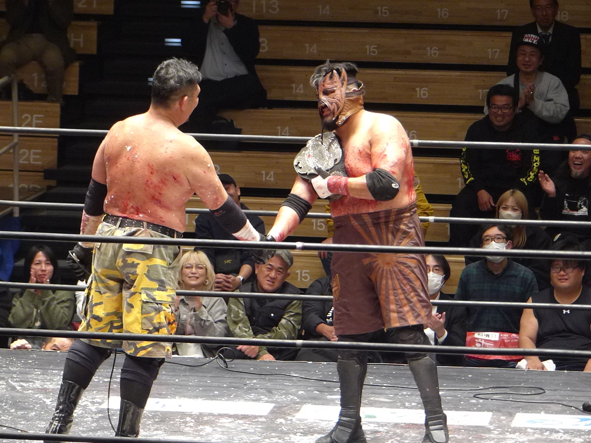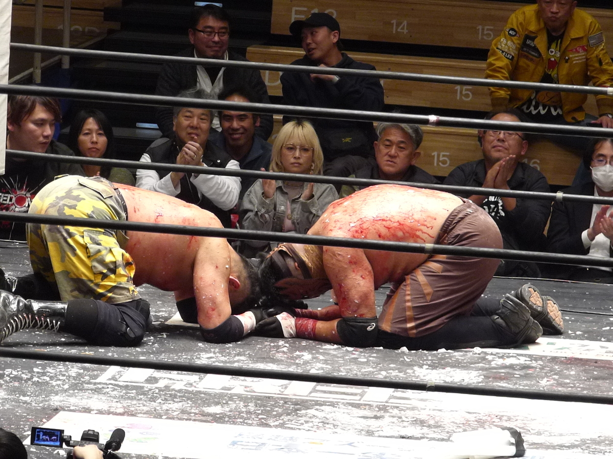 KFCシングルにしては流血が少なめな気がしましたが、それでも大満足な試合でした。そしてKFCシングル戦終了後の爽やかな読後感よ。2人のほっこり感も相まって、爽やかさマシマシだったと思います。