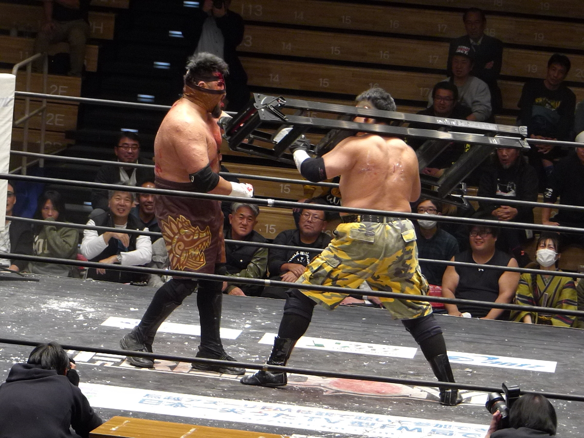 近くの席のプロレス博識ニキの話がちょいと聞こえたけど、多少のFMW成分が今日のマンモスの戦い方にはあったのだろうか。