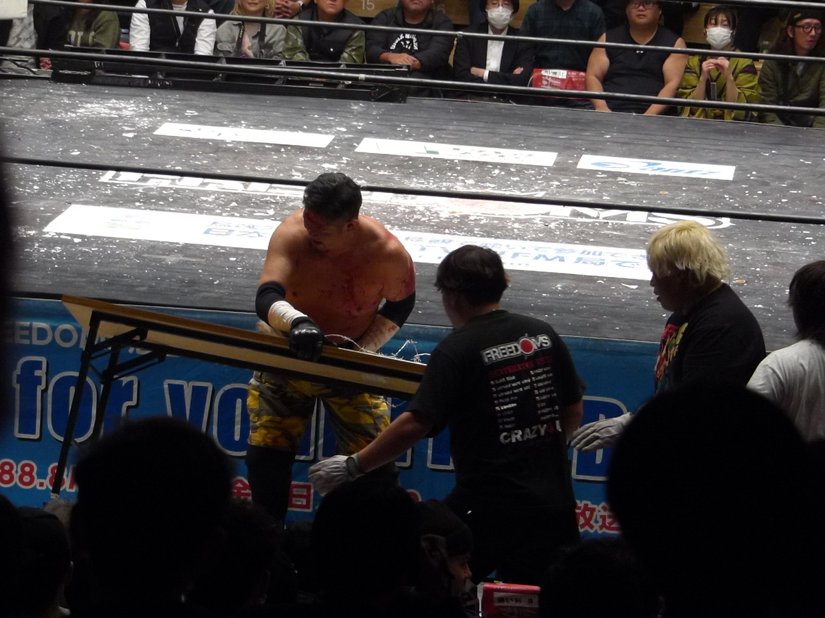 しかしデスマッチ歴は本当に浅く、今年の8.26にデスマッチデビューしたばかりとのこと。デスマッチの実戦経験も数試合あるかどうかじゃなかろうか。